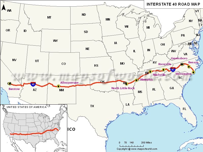 The highway provides access to major cities across the country, enabling motorists to easily travel to several major interstate highway systems that intersect I-40 along the route.